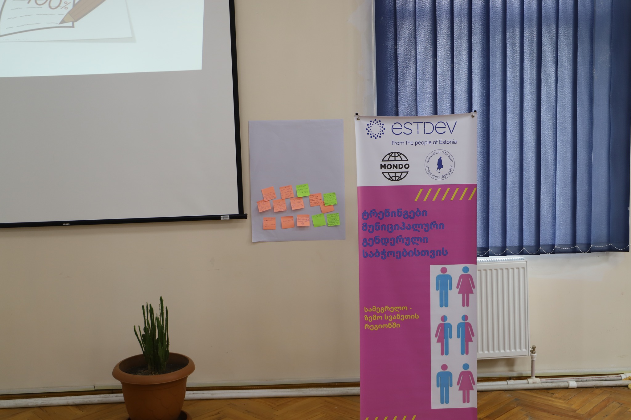 მარტვილის მუნიციპალიტეტის მერიის საკონფერენციო დარბაზში “მუნიციპალური გენდერული თანასწორობის საბჭოები-ფუნქციები, როლი და საქმიანობა” ტრენინგი გაიმართა. თემა:გენდერული თანასწორობა, ქალის უფლებები, ქალთა მიმართ ძალადობა, გენდერული სტერეოტიპები, დისკრიმინაცია-დეფინიცია, პირდაპირი და ირიბი დისკრიმინაცია, ქალთა მიმართ ოჯახში ძალადობა-საქართველოს კანონმდებლობის მოკლე მიმოხილვა, გენდერული თანასწორობის მუნიციპალური ორგანოები, ადგილობრივი თვითმართველობის უფლებამოსილებანი გენდერული თანასწორობის ხელშეწყობის სფეროში.