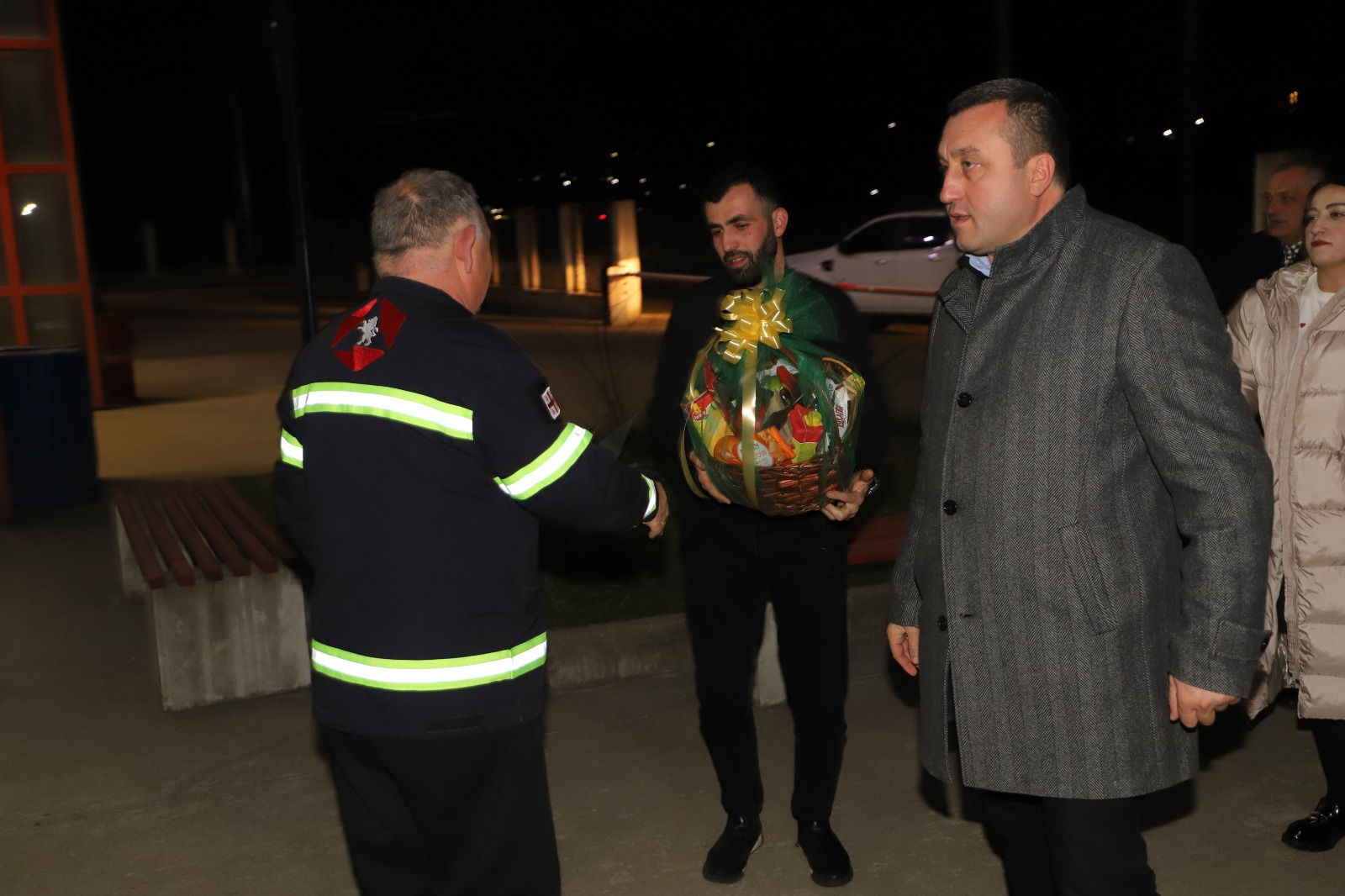 “ექიმები, პოლიციელები, მეხანძრე-მაშველები, თქვენ ხართ ადამიანები, რომლებიც 24 საათიან რეჟიმში ხართ ქვეყნის სამსახურში. ამისთვის გიხდით მადლობას. თქვენი ღვაწლი მნიშვნელოვანია ჩვენი მუნიციპალიტეტისთვს. გილოცავთ ახალ, 2024 წელს. გისურვებთ ჯანმრთელობას, მშვიდობას, კეთილდღეობას!” – აღნიშნა თორნიკე ჯანაშიამ.