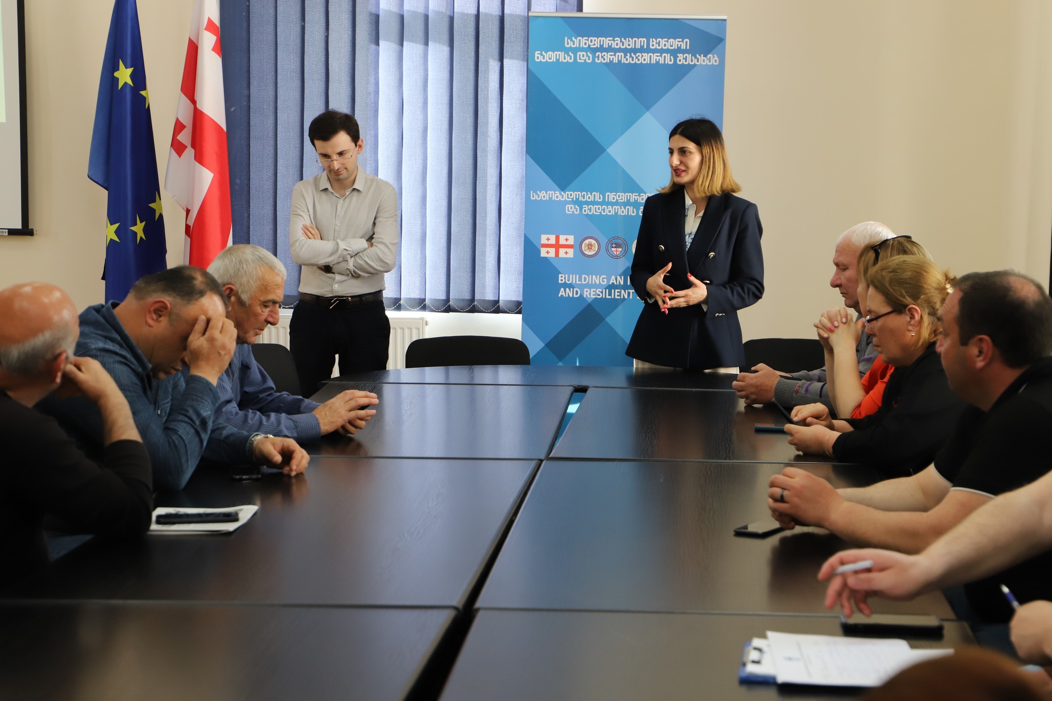 შეხვედრას მოდერაცია საინფორმაციო ცენტრის წარმომადგენელმა სამეგრელო-ზემო სვანეთის რეგიონში ანა ცანავამ გაუწია და ცენტრის საქმიანობასა და მიზნებზე ისაუბრა.