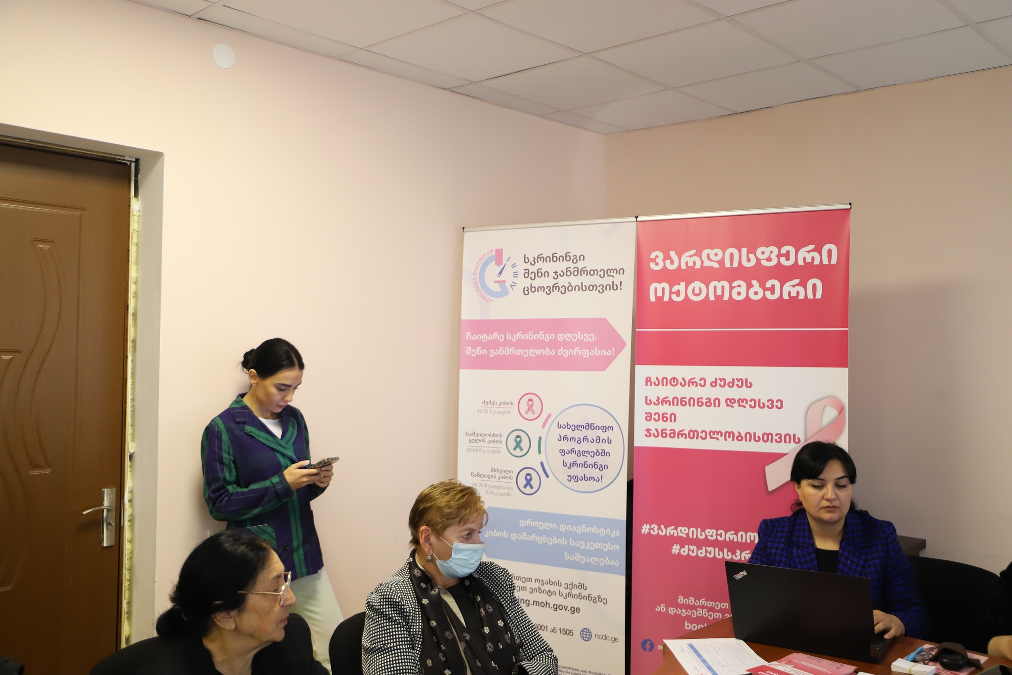 დაავადებათა კონტროლისა და საზოგადოებრივი ჯანმრთელობის ეროვნული ცენტრის, კიბოს სკრინინგის საკითხებზე მოსახლეობის საგანმანათლებლო და ცნობიერების ამაღლების ეროვნული კამპანიის ეგიდით 18 ოქტომბერს მარტვილში საზოგადოებრივი ჯანდაცვის ცენტრში საინფორმაციო შეხვედრა გაიმართა.