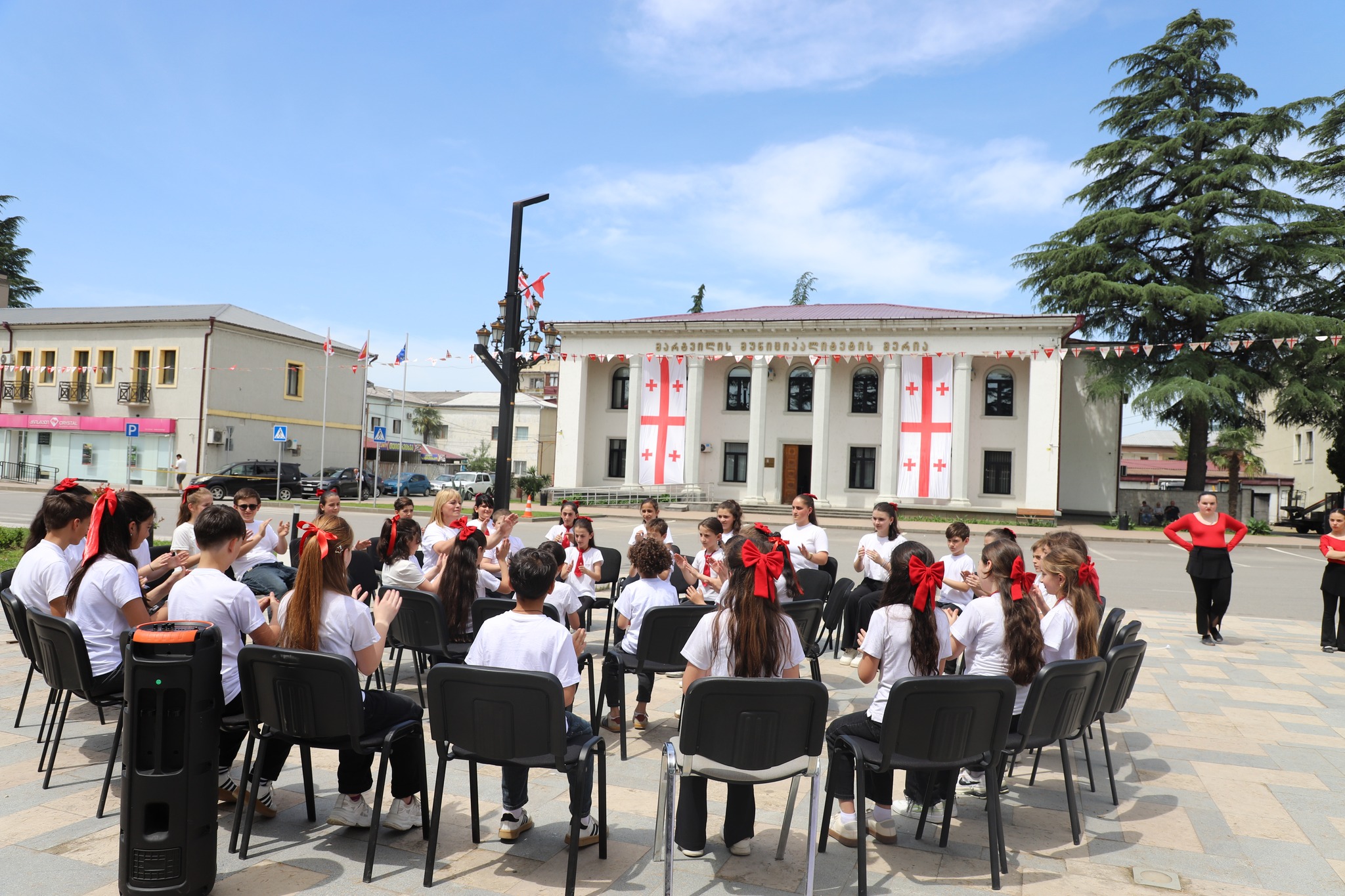 ქალაქის ცენტში, მარტვილის მუნიციპალიტეტის სკოლის შემოქმედებითი ჯგუფების მონაწილეობით საზეიმო კონცერტი გაიმართა.
