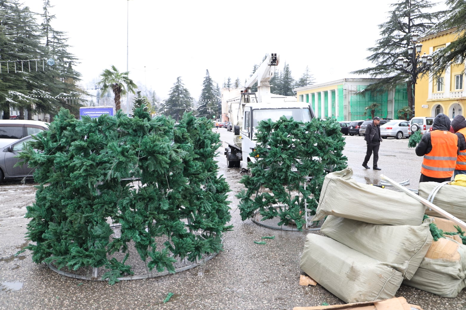 პარალელურად მიმდინარეობს ქუჩებში საახალწლო ილუმინაციების მოწყობა.