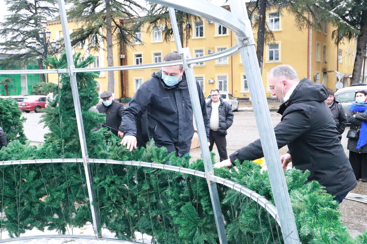 ქალაქის ცენტრალურ ქუჩაზე ახალი ნაძვის ხე ეწყობა.