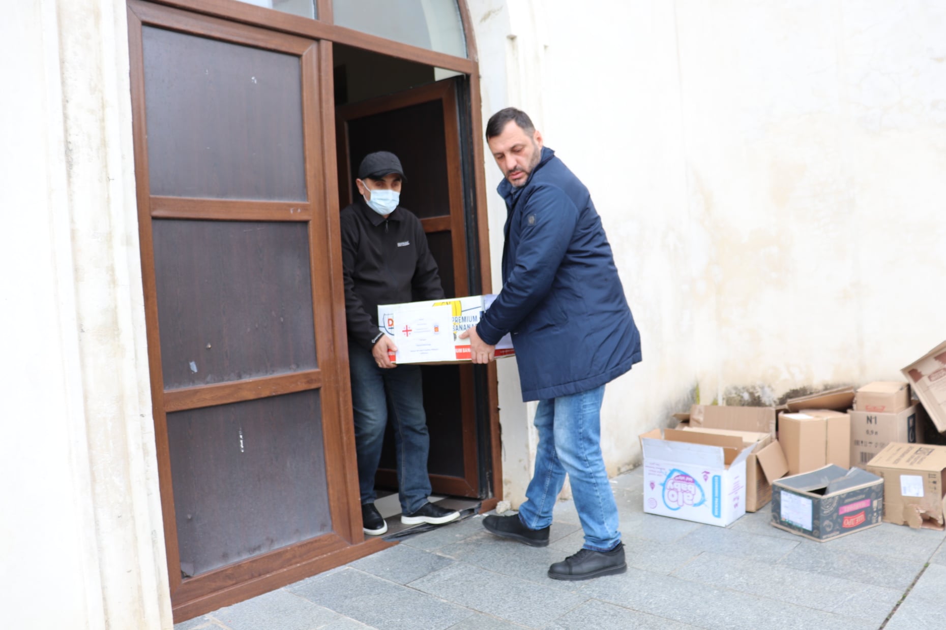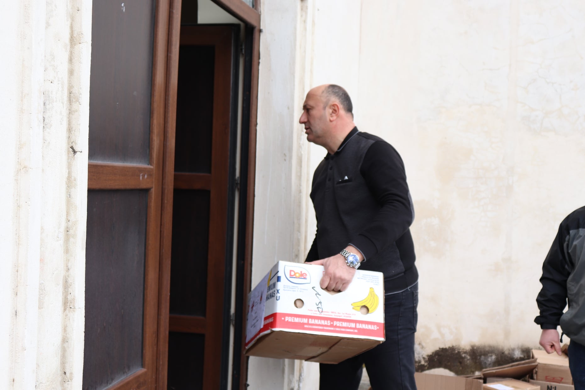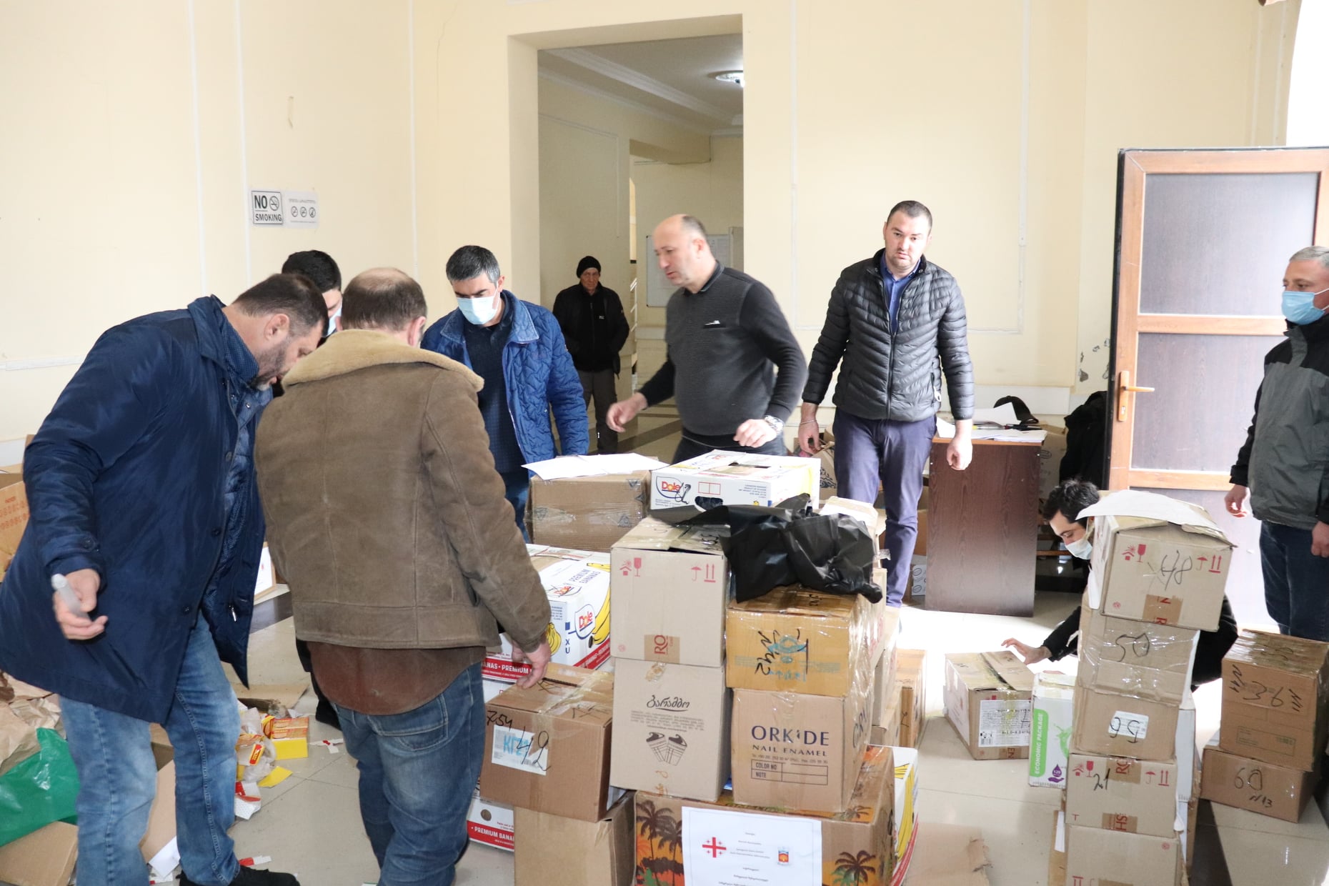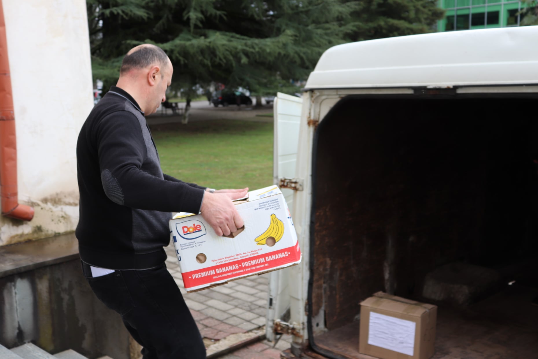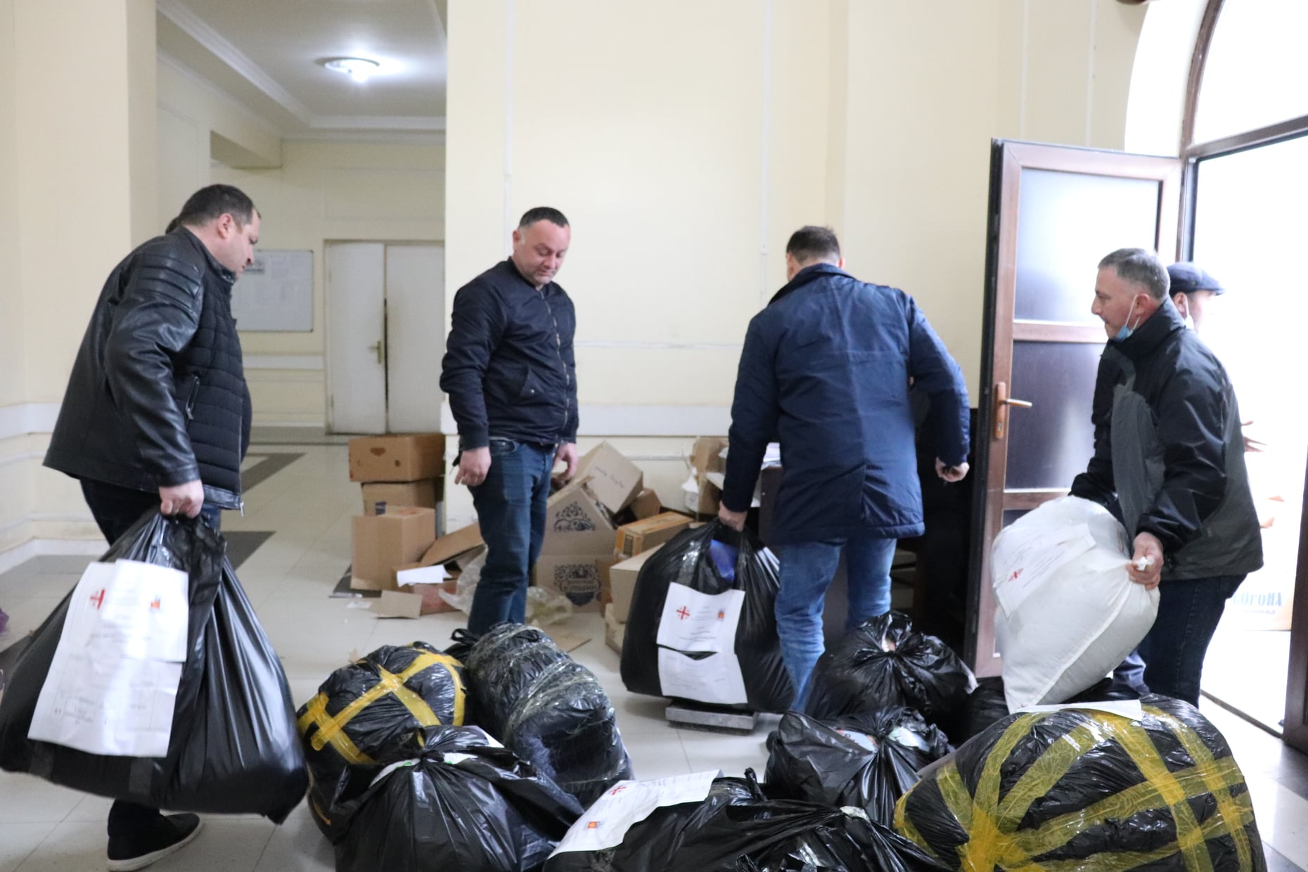 მოწოდებული პროდუქცია შეიფუთა და სატვირთო მანქანაში მუნიციპალიტეტის მერიის, საკრებულოს და ა(ა)იპ-ების მოხალისეთა ჩართულობით განთავსდა.
